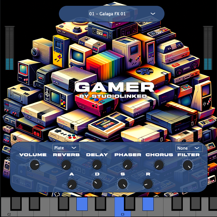 Gamer VST is a free plug-in from StudioLinked. It is inspired by the theme of classic 8-bit video game music. It contains 13 instruments that you can use immediately for your next beat.